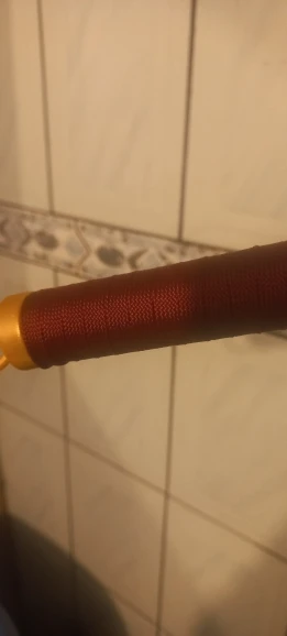Red is not plastic, it is fabric, and silver looks like wood, but that is very good because it is hard, and it also has paint with silver shine, not in matte color, which makes it more like a real weapon.